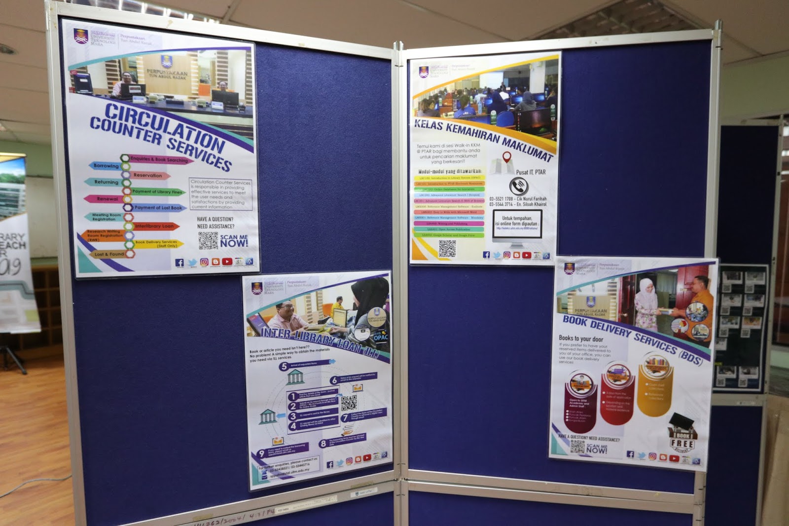 | Library Outreach Program@PTAR merupakan satu program jerayawara PTAR ke seluruh fakulti / Bahagian /Pusat UiTM. Tujuan program ini dianjurkan adalah untuk mewar-warkan maklumat perkhidmatan terkini PTAR disamping mendapatkan maklum balas daripada pengguna bagi tujuan penambahbaikan perkhidmatan perpustakaan. Program Library Outreach@PTAR Fakulti Kejuruteraan Elektrik , UiTM Tarikh: 6 Mac 2019 (Rabu), Masa: 9.30 pagi hingga 4.30 petang Tempat : Bilik Seminar Al – Hidayah & Dewan Kuliah C Jumlah penyertaan : 65 orang |