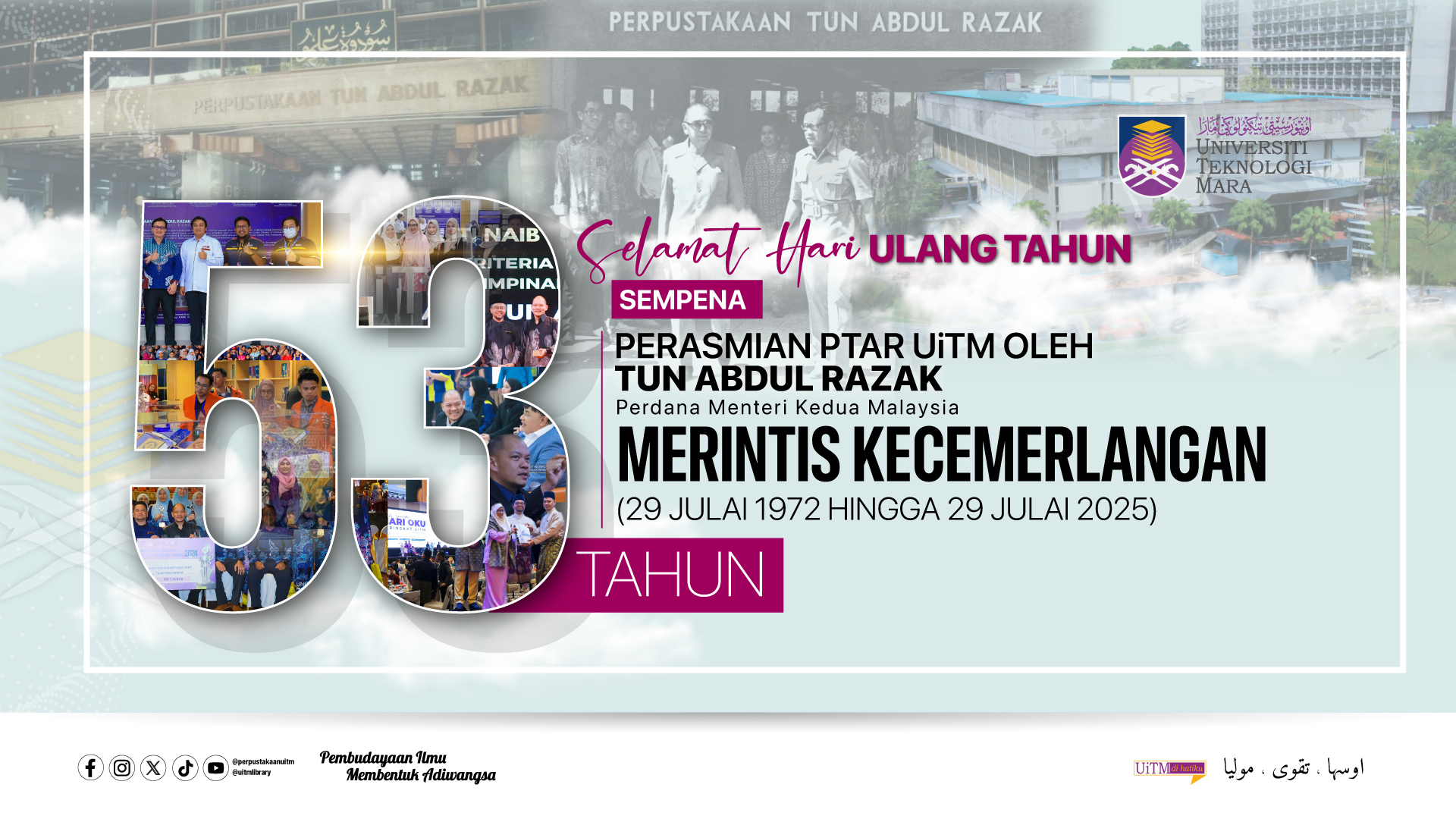 “In conjunction with the 53rd Anniversary of Tun Abdul Razak Library (PTAR), UiTM Shah Alam,” Catatan Ketua Pustakawan UiTM, accessed November 28, 2025, https://library.uitm.edu.my/catatankp/items/show/73.