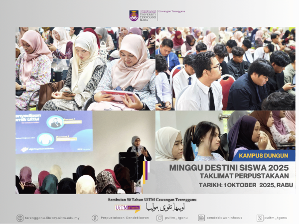 Tarikh: 1 Oktober 2025, Rabu.Masa: 2.30 petang – 3.30 petangTempat: Perpustakaan Cendekiawan UiTM Cawangan Terengganu (UiTMCT) Kampus DungunAnjuran: Bahagian Hal Ehwal Pelajar, UiTMCTPenglibatan: 240 orang pelajar baharu Pra-Diploma dan Program….