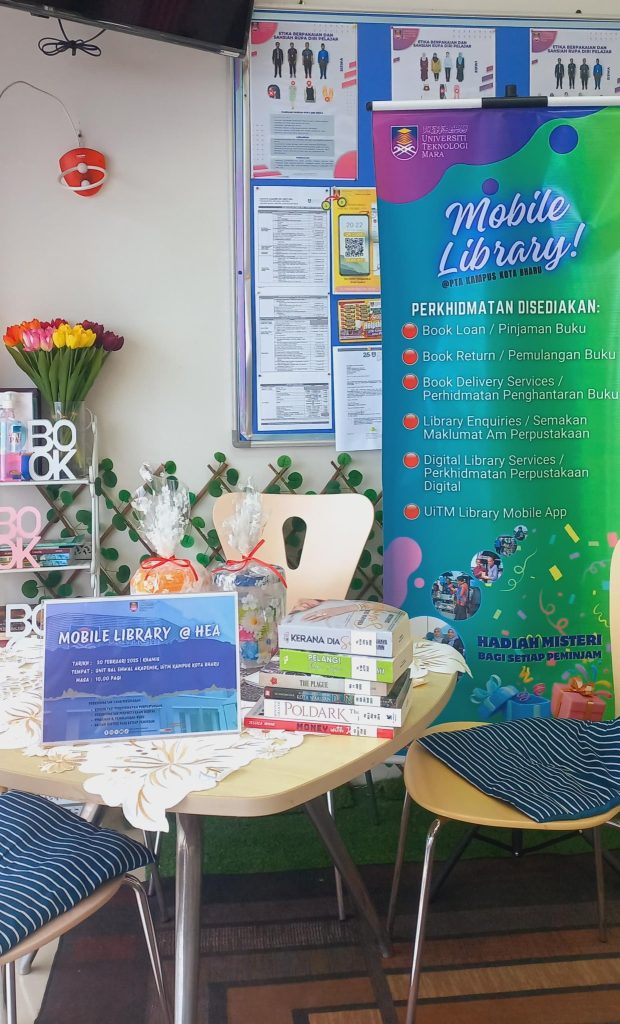 Perpustakaan Tengku Anis, UiTM Cawangan Kelantan Kampus Kota Bharu telah mengadakan βProgram Mobile Library @HEAβpetang bertempat di Unit Hal Ehwal Pelajar (HEA), UiTM Cawangan Kelantan Kampus Kota Bharu. Program ini telah berjaya mendekatkan staf kepada koleksi bahan perpustakaan serta menggunakan perkhidmatan perpustakaan secara atas talian yang ditawarkan oleh pihak perpustakaan. Staf juga telah didedahkan kepada perkhidmatan digital baharu seperti MyKM Search dan UiTM eLib. Hadiah misteri juga telah disediakan untuk menarik minat para pengunjung untuk mendekati perpustakaan dengan lebih dekat.