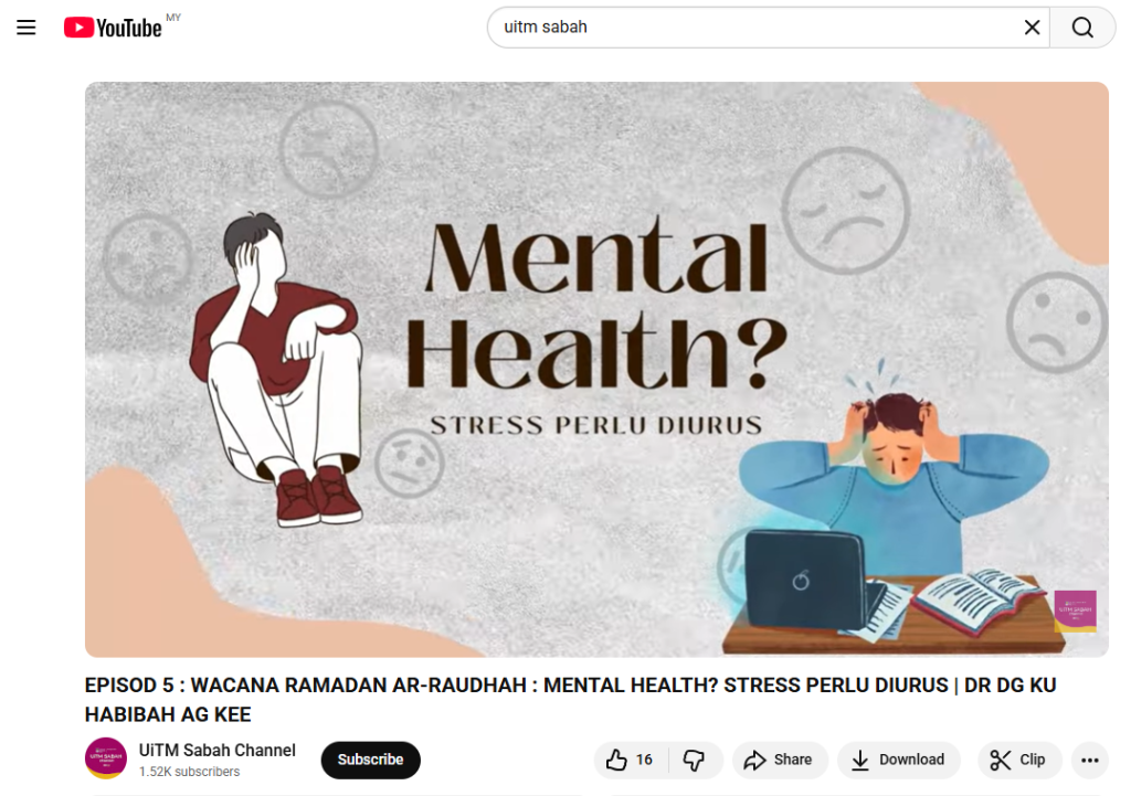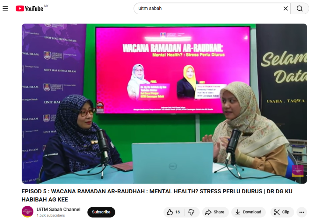 Saluran : Youtube UiTM Sabah Channel https://www.youtube.com/watch?v=F2uJQ0Yado4
