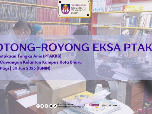 Pelaksanaan EKSA di Perpustakaan Tengku Anis, UiTM Cawangan Kelantan Kampus Kota Bharu adalah selaras dengan inisiatif UiTM dalam memperkukuh budaya kerja yang lebih sistematik, kondusif dan mesra pelanggan. EKSA bukan….
