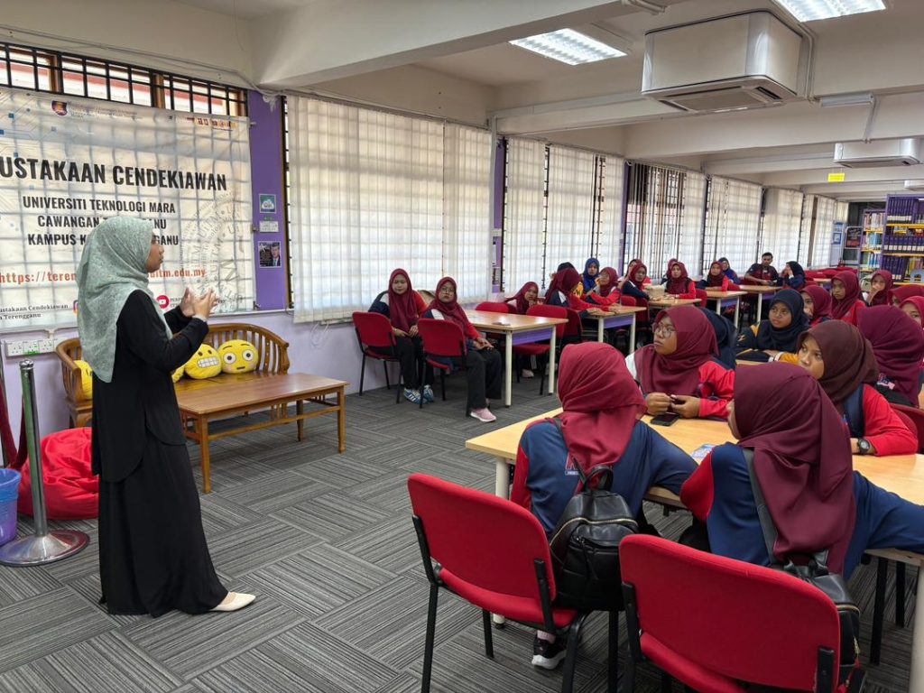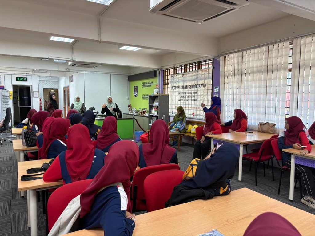 Taklimat perpustakaan telah diberikan oleh Puan Nurmaisari Che Anuar selaku Pustakawan mengenai perkhidmatan perpustakaan di Universiti antaranya koleksi perpustakaan, sistem perpustakaan dan lain-lain. Selain itu, turut dijelaskan mengenai pelaksanaan program yang dilaksanakan oleh warga staf perpustakaan samada di perpustakaan atau luar perpustakaan. Sedikit perkongsian mengenai kerjaya sebagai Pustakawan turut dikongsi sebagai pemangkin para pelajar untuk melanjutkan pelajaran ke Pengajian Tinggi.