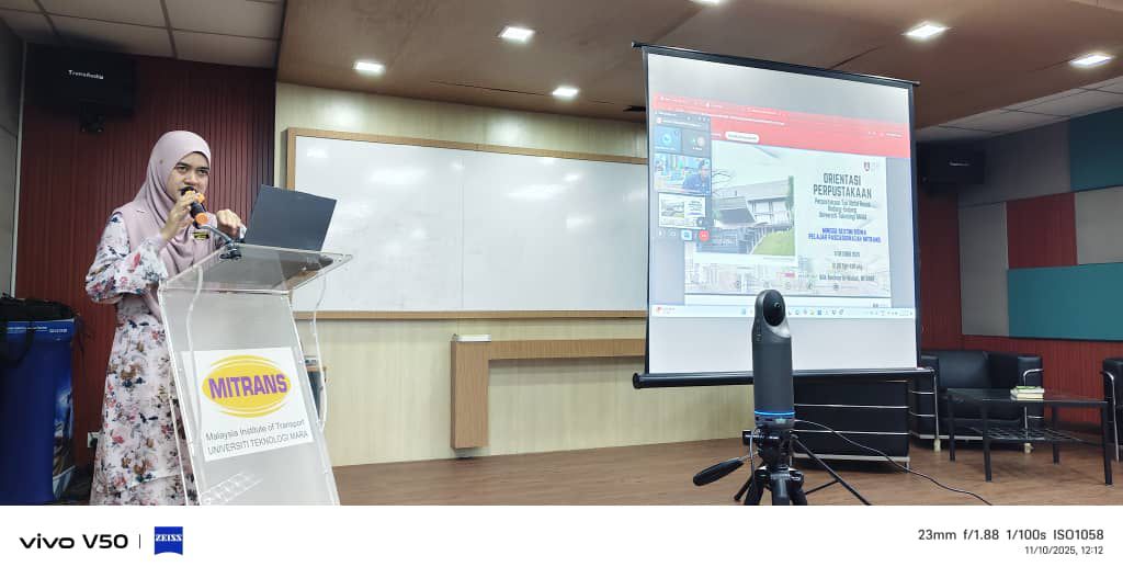 SHAH ALAM, 11 Oktober 2025 – Sesi Taklimat Orientasi Perpustakaan telah diadakan sempena Minggu Destini Siswa Pascasiswazah MITRANS bertempat di Bilik Seminar Al-Maidah, MITRANS. Taklimat yang berlangsung dari jam 12.00 tengah hari hingga 1.00 petang ini disampaikan oleh Ketua Perpustakaan Undang-Undang (PTUU), Puan Masnida Hanim Che Mahmood.