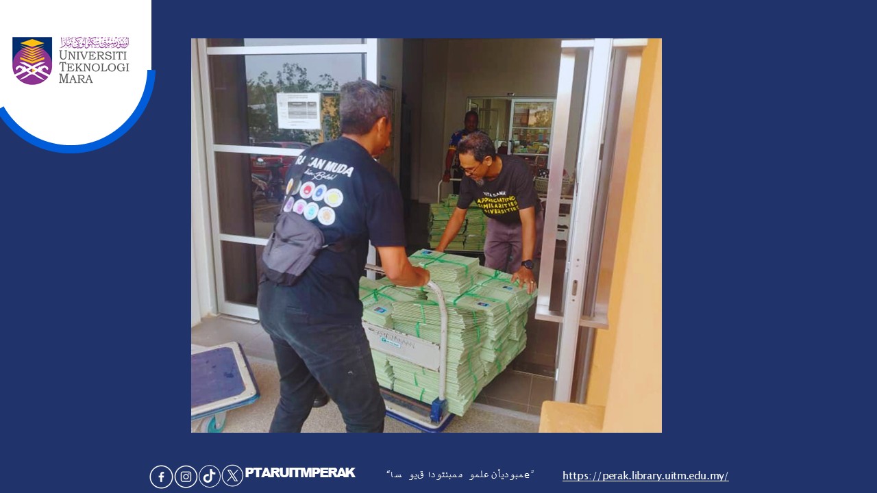 27 Oktober 2025: Unit Arkib Cawangan (UAC) Perak telah menerima sejumlah 1,526 fail peribadi pelajar daripada Pejabat Fakulti Seni Lukis dan Seni Reka, Hal Ehwal Akademik. Penyerahan rekod ini dijalankan di Bilik Arkib, UAC Perak pada 26 Jun 2025 jam 10.00 pagi. Fail tersebut merupakan rekod pelajar yang telah tamat pengajian melebihi tempoh lima tahun dan seterusnya layak untuk ditempatkan ke UAC. Proses seterusnya melibatkan memuat naik rekod ke dalam Archive Management System (AMS) bagi tujuan penyimpanan digital dan rujukan masa hadapan. Warga kampus boleh mengakses maklumat berkenaan melalui Online Finding Archive (OFA) UiTM untuk tujuan penyelidikan atau keperluan rasmi.