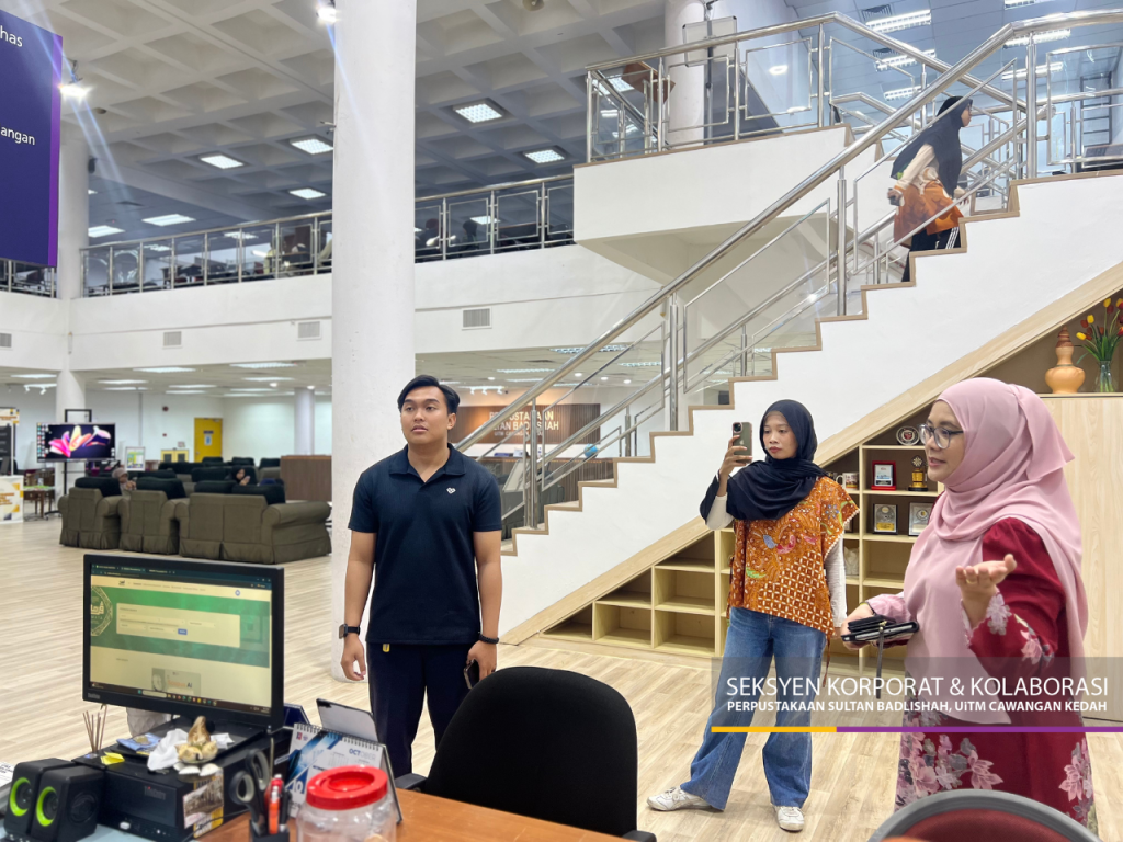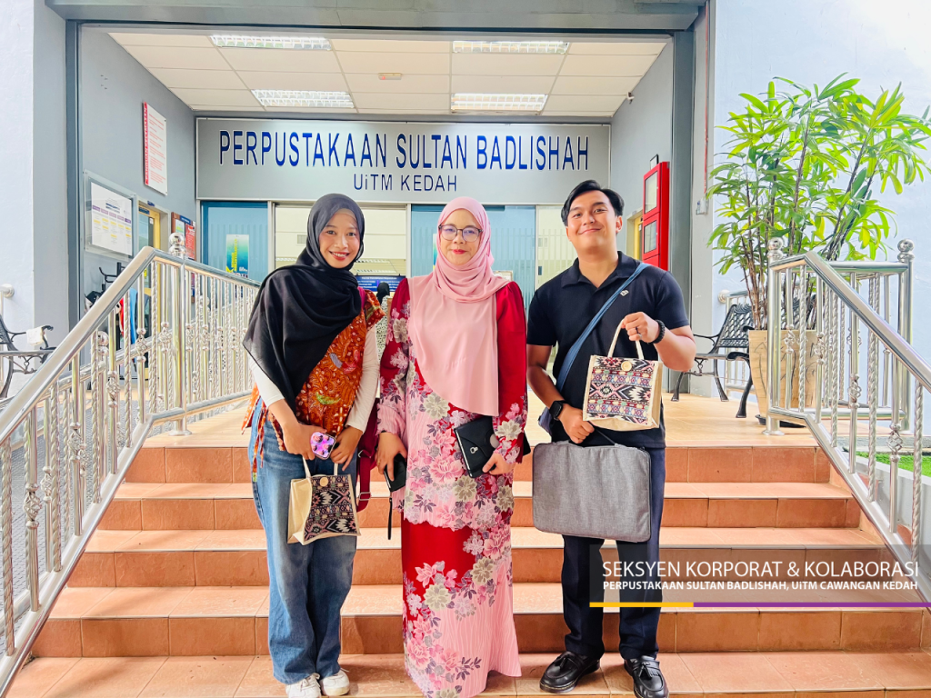 Merbok, 30 Oktober 2025 – Perpustakaan Sultan Badlishah (PSB), Universiti Teknologi MARA (UiTM) Cawangan Kedah, telah menerima kunjungan akademik daripada dua orang wakil pelajar pascasiswazah Jabatan Manajemen, Fakultas Ekonomi dan Bisnis, Universitas Brawijaya, Indonesia. Delegasi yang terdiri daripada Noorsy Zidna Nabiela S.M., M.M. dan Yosabah Zahro S.M. telah disambut mesra oleh Puan Wan Rohani Wan Chin, Pustakawan Kanan PSB. Lawatan ini bertujuan meninjau perkhidmatan dan kemudahan perpustakaan UiTM Kedah serta menjadi platform perkongsian pengetahuan dan amalan terbaik antara institusi pendidikan tinggi serantau.