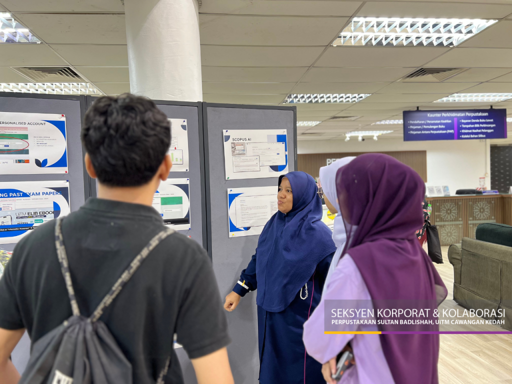 Merbok, 24 Oktober 2025 – Perpustakaan Sultan Badlishah (PSB) UiTM Cawangan Kedah dengan kerjasama Kelab Bachelor of Library Science (BLiBS) telah menganjurkan Program Pembudayaan Ilmu: Jelajah Ilmu pada 23 hingga 24 Oktober 2025 bertempat di Lobi Perpustakaan Sultan Badlishah. Program ini merupakan inisiatif untuk memberi peluang kepada warga kampus memperoleh ilmu dalam suasana yang santai, interaktif dan menyeronokkan. Pendekatan ini mencerminkan usaha PSB dalam menyemai budaya ilmu yang inklusif dan berterusan, seiring dengan peranan perpustakaan sebagai pusat pembelajaran yang menyokong komuniti akademik.