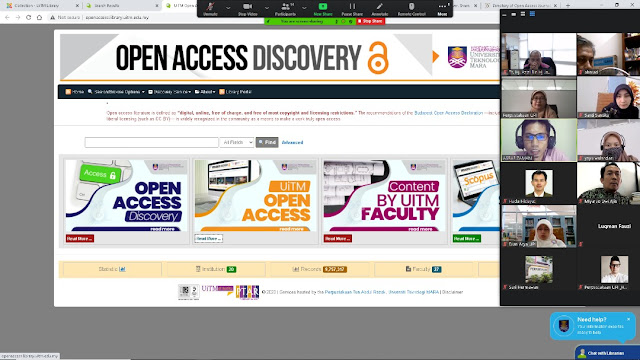 Perpustakaan Tun Abdul Razak (PTAR) telah menerima lawatan kerja penandaarasan daripada Perpustakaan Universitas Pendidikan Indonesia (UPI) secara atas talian menggunakan platform Zoom Meeting. Lawatan ini diketuai oleh Ketua Pustakawan iaitu Ibu Dr. Riche Cynthia Johan, M. Si serta beberapa pegawai perpustakaan dan diraikan oleh Ts. Hj. Azizi bin Jantan selaku Ketua Jabatan Perpustakaan Digital, Tn Hj Ahmad Faizar dan En. Ashraf Zamani. Tujuan lawatan kerja penandaarasan ini adalah untuk mendapatkan gambaran sebenar mengenai pengurusan koleksi digital seperti yang telah diwujudkan oleh Perpustakaan Tun Abdul Razak. Justeru, pihak PTAR amat berbesar hati berkongsi maklumat mengenai pengurusan koleksi digital akses terbuka (open access) dan laman web perpustakaan. Penekanan turut diberikan kepada tiga komponen Perpustakaan Digital PTAR iaitu perkhidmatan digital (digital service), koleksi digital (digital collection) dan proses digital (digital proccess). Di samping itu, proses pengindeksan bahan akses terbuka seperti Directory Open Access Journal (DOAJ), Directory Open Access Book (DOAB) dan lain-lain repositori institusi turut dikongsi bersama. Semoga perkongsian ini dapat memberi manfaat kepada seluruh warga Perpustakaan Universitas Pendidikan Indonesia (UPI).