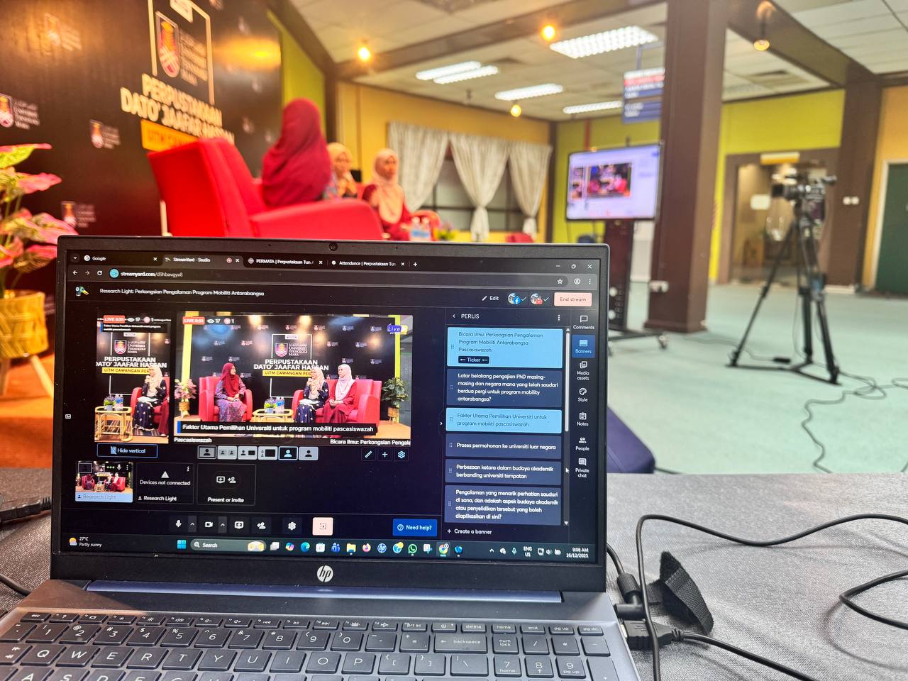 Program Budaya Ilmu yang bermula dari jam 9.00 hingga 11.00 pagi ini merupakan anjuran Bahagian Penyelidikan & Jaringan Inovasi (PJI) dengan kerjasama strategik Pusat Pengajian Siswazah (IPSis), UiTM Global, dan Perpustakaan Dato' Jaafar Hassan, UiTM Cawangan Perlis. Selain kehadiran fizikal, program ini turut disiarkan secara LIVE melalui Facebook dan YouTube rasmi perpustakaan. Sesi yang penuh inspirasi ini dikendalikan oleh Dr. Nurul Aizan Mohd Zaini selaku moderator.