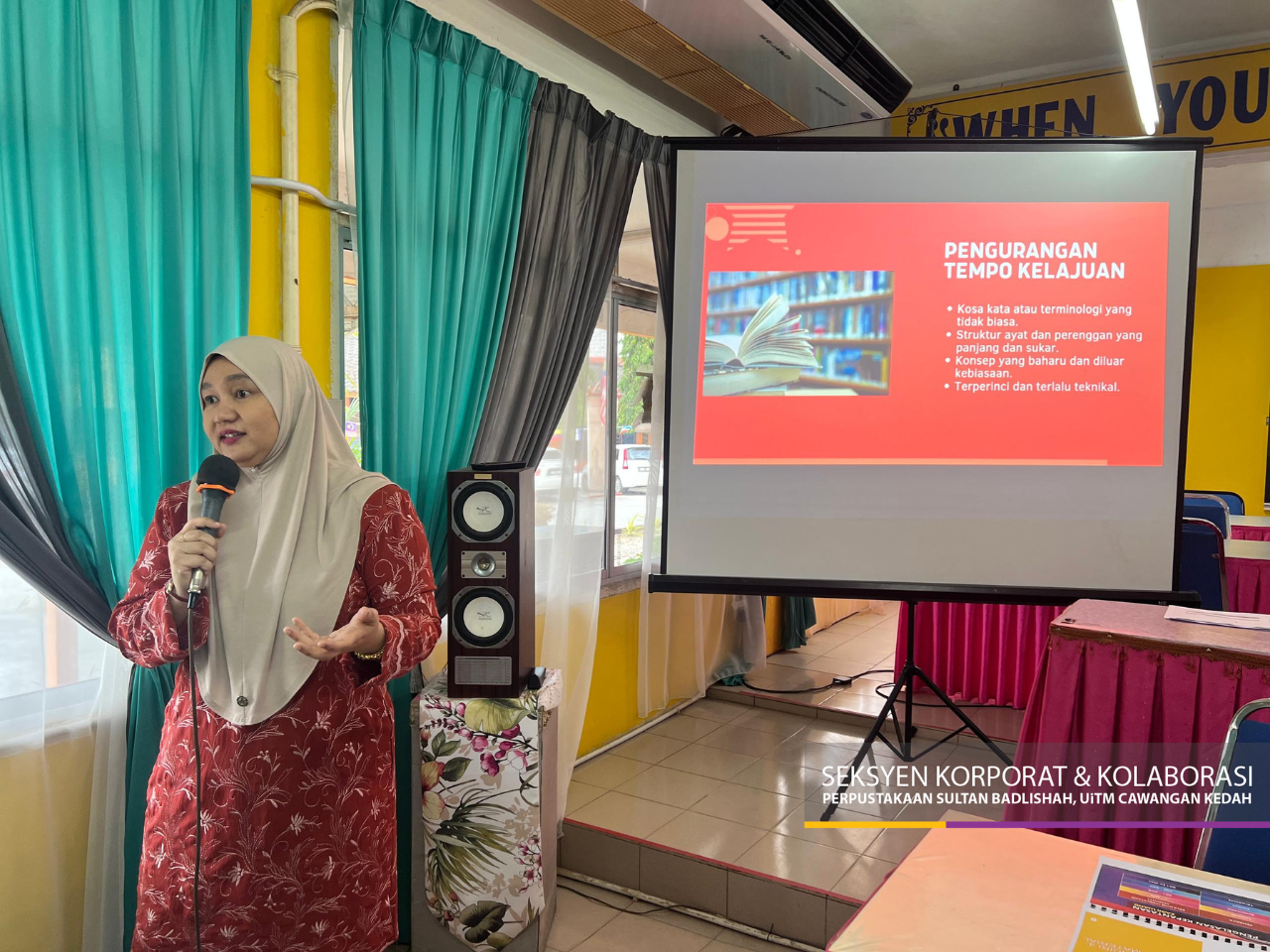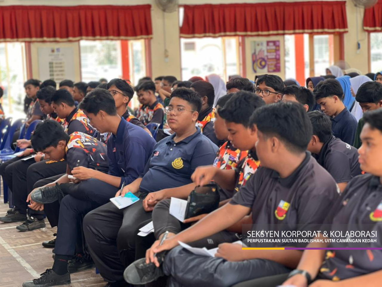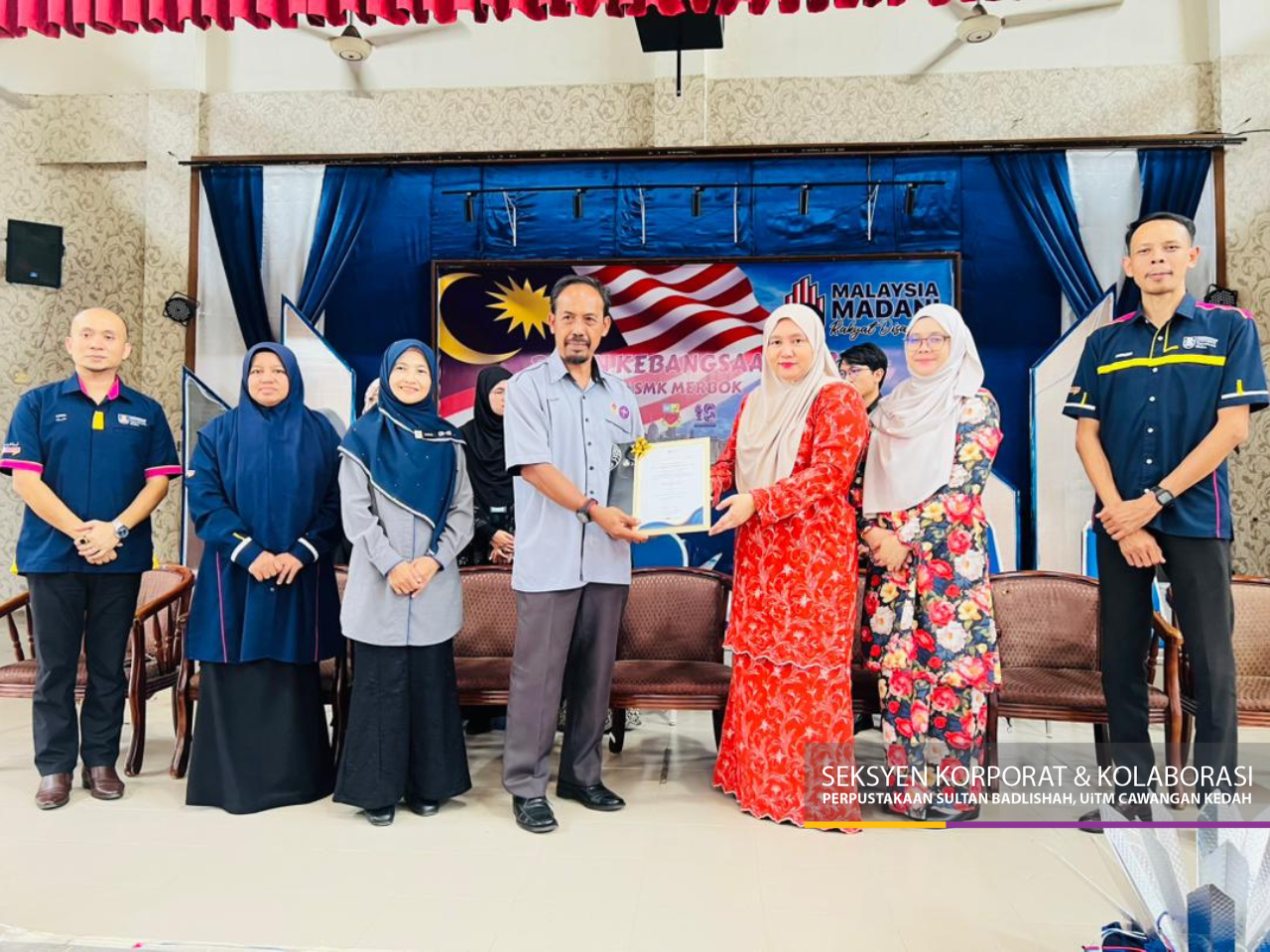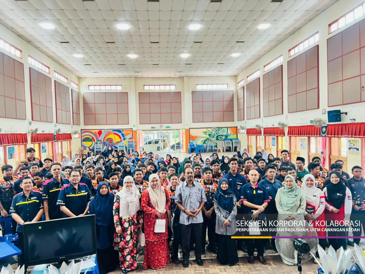 1 Oktober 2025 – Perpustakaan Sultan Badlishah (PSB), UiTM Cawangan Kedah telah mengadakan Program Kerjasama bersama Sekolah Menengah Kebangsaan (SMK) Merbok yang berlangsung pada 1 Oktober 2025, bermula jam 8.00 pagi hingga 1.10 tengah hari bertempat di SMK Merbok, Kedah. Program ini telah melibatkan penyertaan seramai 124 orang pelajar bersama warga pendidik sekolah berkenaan dengan tujuan memperkukuh budaya ilmu dan meningkatkan kemahiran literasi maklumat dalam kalangan pelajar sekolah menengah.