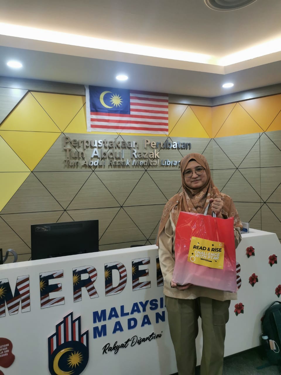 Read and Rise Challenge with PTAR anjuran Perpustakaan Perubatan Tun Abdul Razak, Hospital Al-Sultan Abdullah (HASA) telah dilaksanakan dengan jayanya. Program ini dirangka khusus untuk memupuk budaya membaca secara konsisten dalam kalangan warga HASA melalui cabaran membaca sebanyak 24 buah buku, sama ada melalui pinjaman bahan dari perpustakaan mahupun bahan bacaan peribadi.
