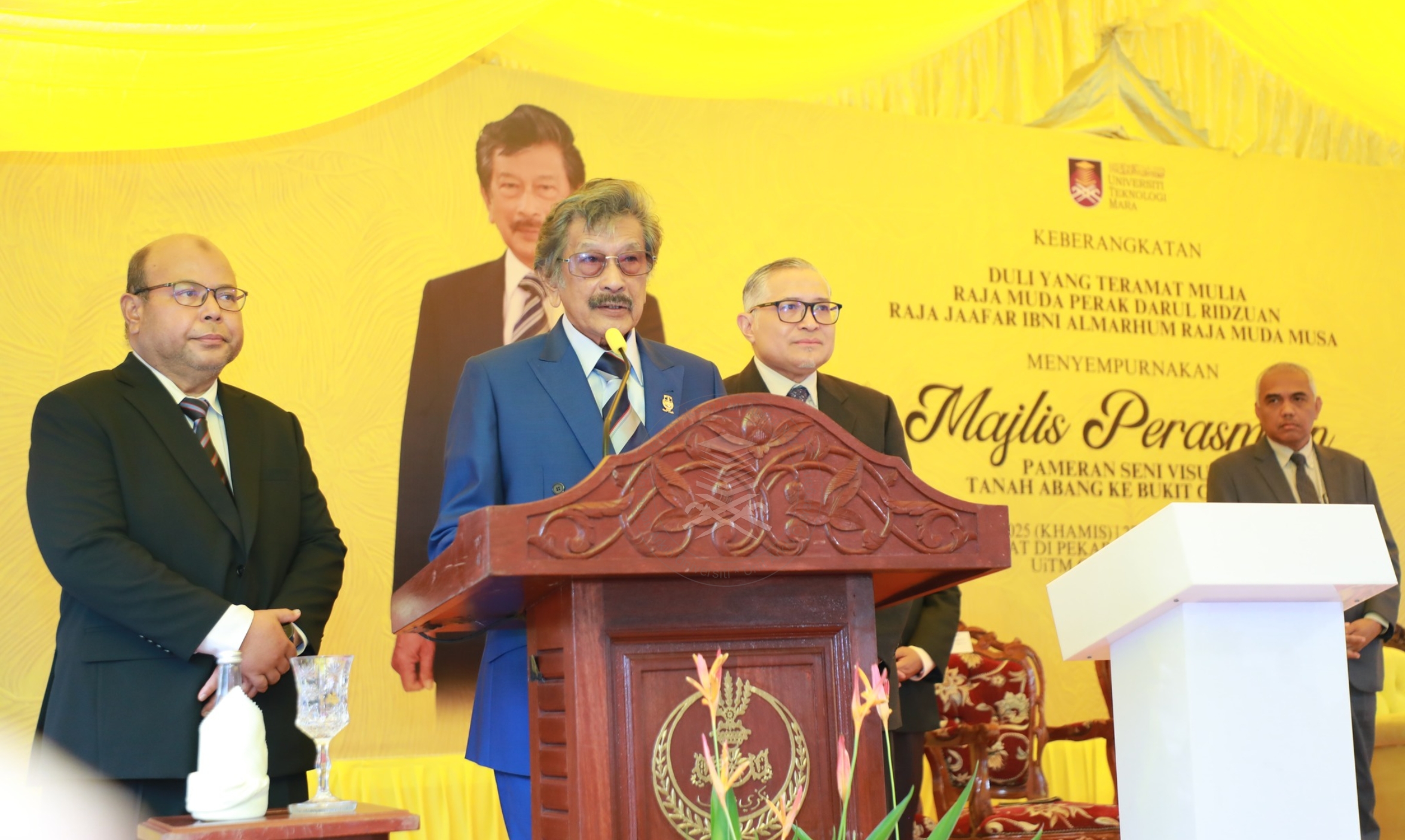 Duli Yang Teramat Mulia, Raja Muda Perak Darul Ridzuan, Raja Jaafar ibni Almarhum Raja Muda Musa bercemar duli berangkat sempena Majlis Perasmian Pameran Seni Visual Tanah Abang ke Bukit Chandan pada 21 Ogos 2025 (Khamis) bersamaan 27 Safar 1447H jam 10.00 pagi bertempat di di Galeri Al-Biruni, Universiti Teknologi MARA (UiTM) Cawangan Perak, Kampus Seri Iskandar. Majlis itu turut dihadiri Pengerusi Jawatankuasa Pendidikan, Pengajian Tinggi, Belia dan Sukan Perak Khairudin Abu Hanipah, Pegawai Daerah Perak Tengah Mohd Zaki Abd Rahman, Timbalan Naib Canselor (Pembangunan) UiTM Profesor Dr Md Yusof Hamid serta Pemangku Rektor UiTM Cawangan Perak Profesor Madya Dr Nur Hisham Ibrahim.