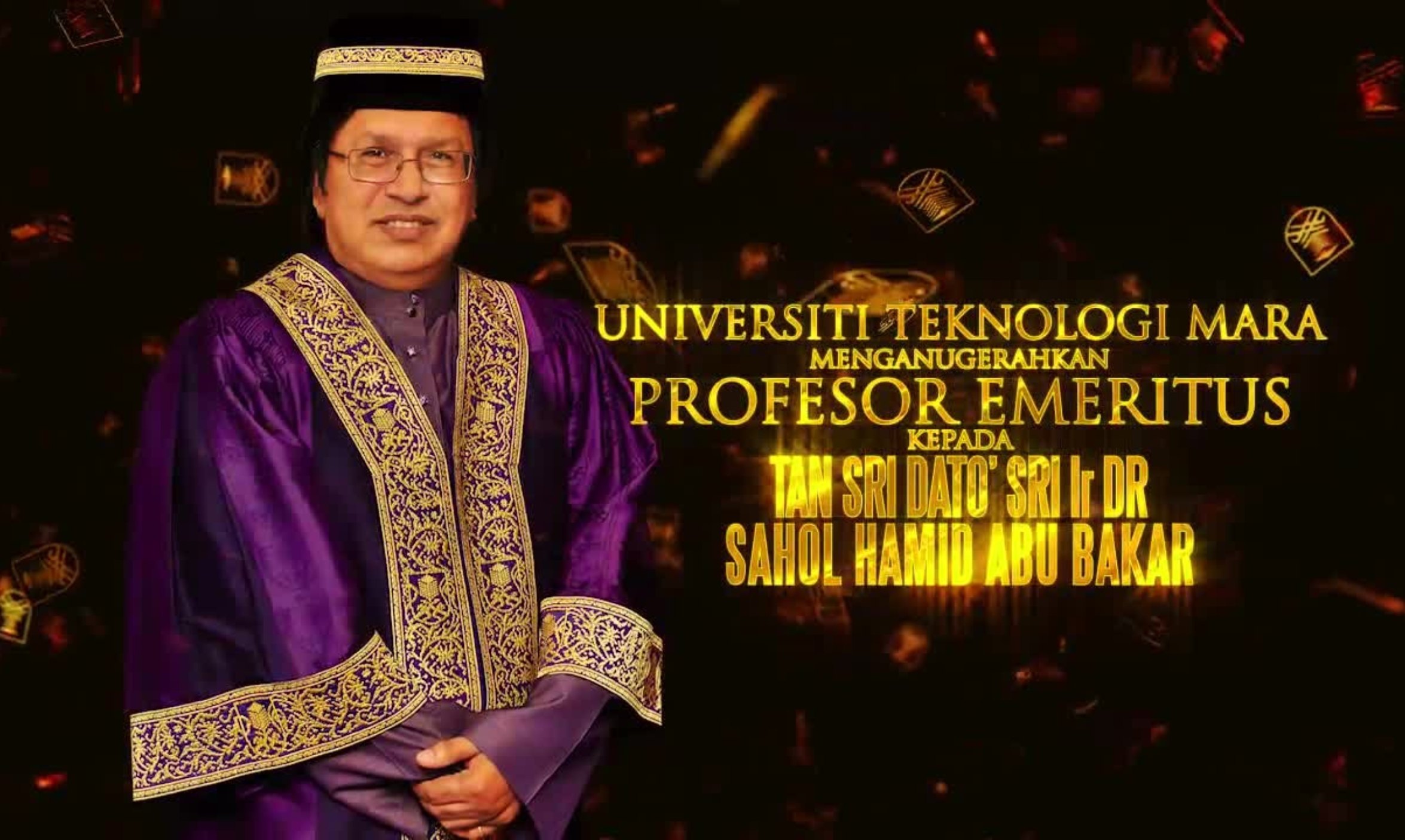 Dengan pencapaian yang cemerlang dan luar biasa, Universiti Teknologi MARA dengan penuh sukacita menganugerahkan gelaran Profesor Emeritus kepada Yang Berbahagia Tan Sri Dato' Sri Ir. Dr. Sahol Hamid Abu Bakar di Istiadat Konvokesyen Universiti Teknologi MARA (UiTM) ke 84 pada 23 April 2016. Anugerah disampaikan oleh YBhg. Tan Sri Dato’ Seri Utama (Dr) Arshad Ayub, Pro Canselor UiTM.