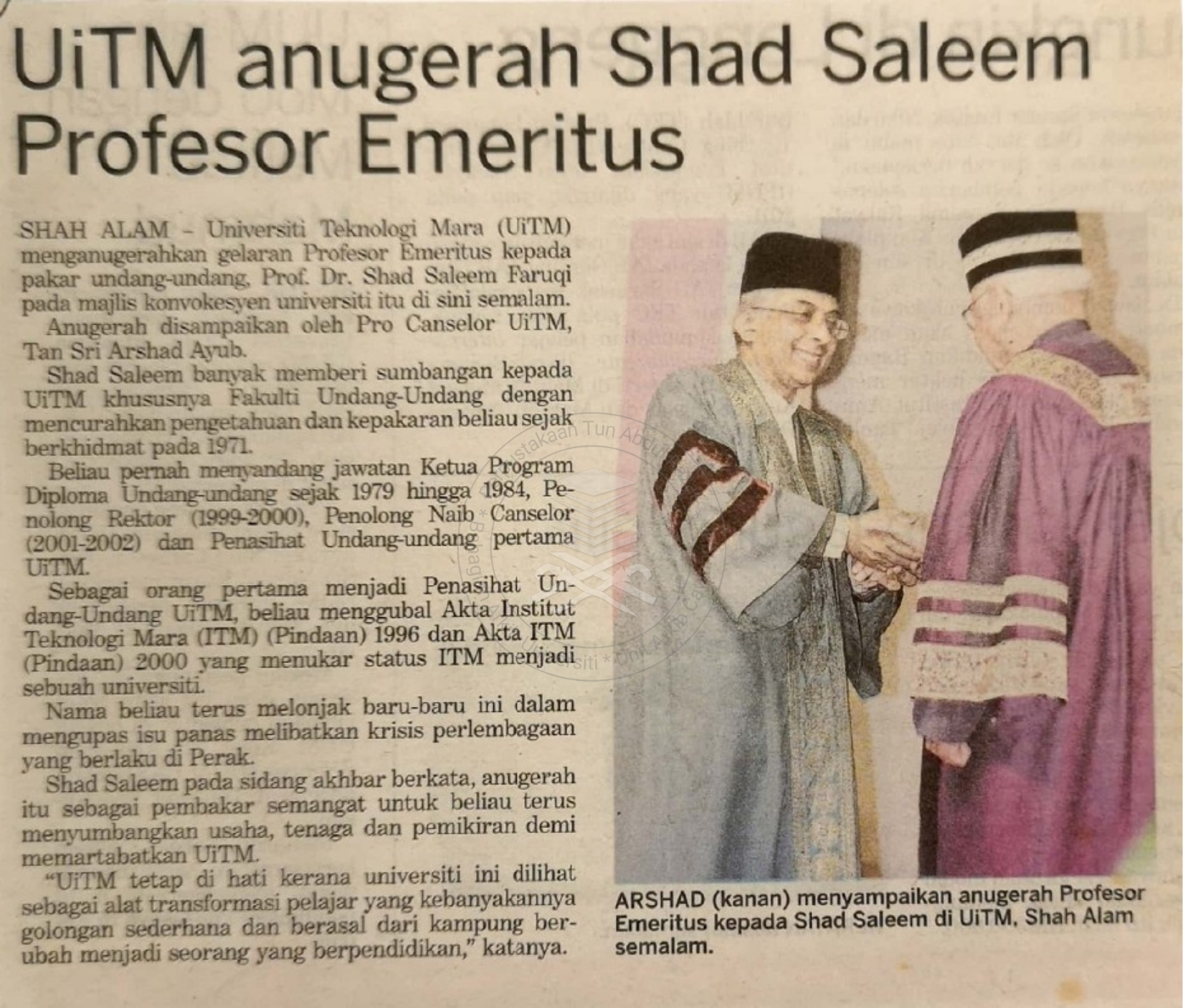 Biografi Profesor Emeritus Dr. Shad Saleem Faruqi