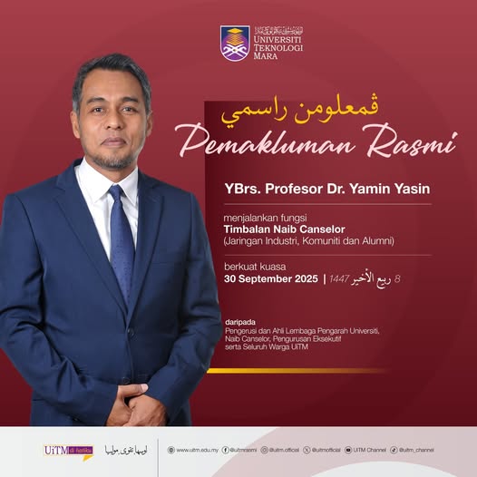 Menerusi pengumuman rasmi UiTM pada 7 Oktober 2025, Profesor Dr. Yamin Yasin, Timbalan Naib Canselor (Akademik dan Antarabangsa) dilantik Menjalankan Fungsi Timbalan Naib Canselor (Jaringan Industri, Komuniti dan Alumni) Universiti Teknologi MARA mulai 30 September 2025.