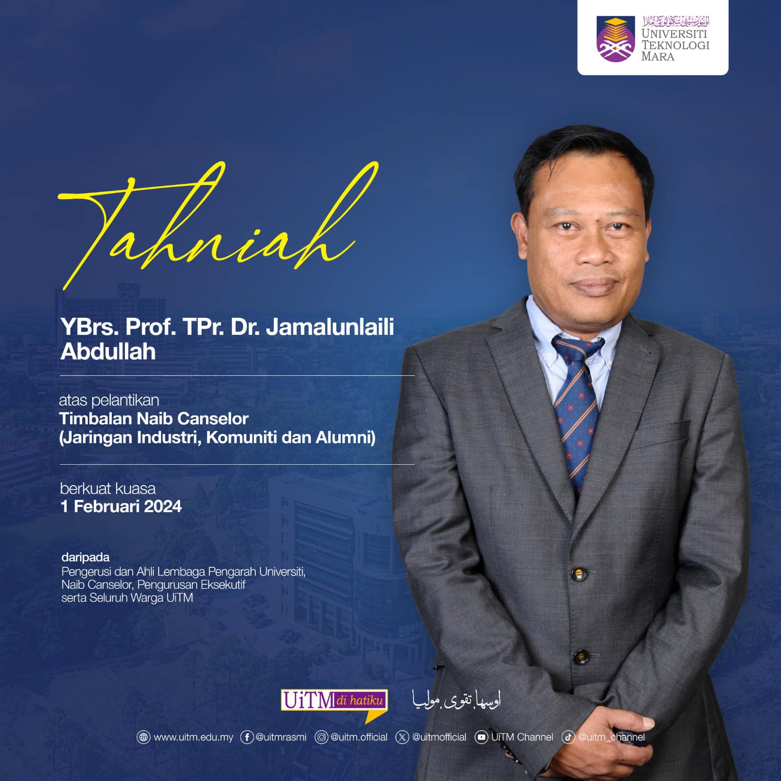 | 6 | Profesor TPr. Dr. Jamalunlaili Abdullah | 2023 – 30 September 2025 | TNC (Jaringan Industri, Komuniti & Alumni) |