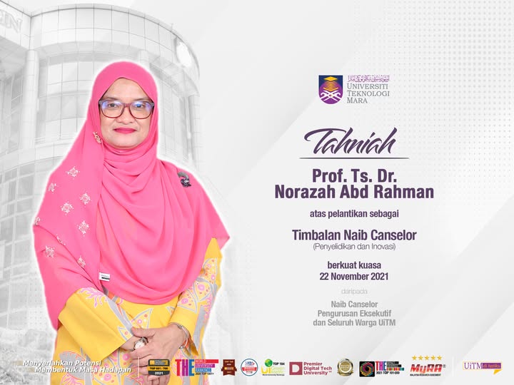 | 5 | Profesor Ts. Dr. Norazah Abd Rahman | Timbalan Naib Canselor (Penyelidikan & Inovasi) | 22 November 2021 – Sehingga kini |